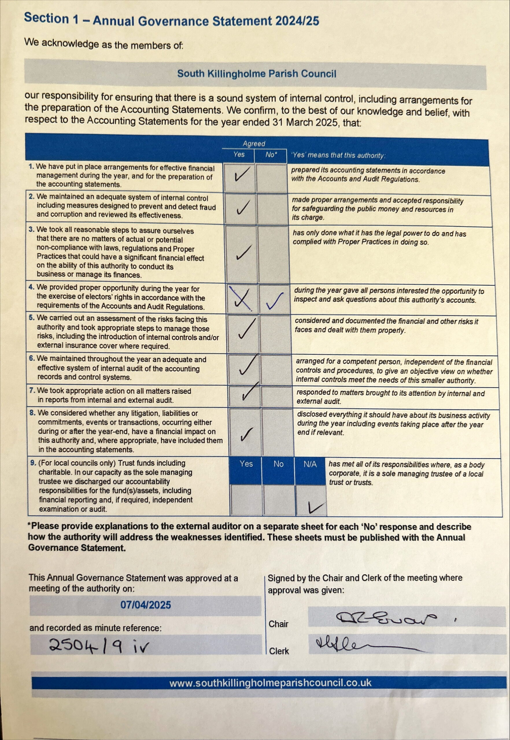Annual governance and Accountability Return 2019/2020 Part 2 Opens in a new window